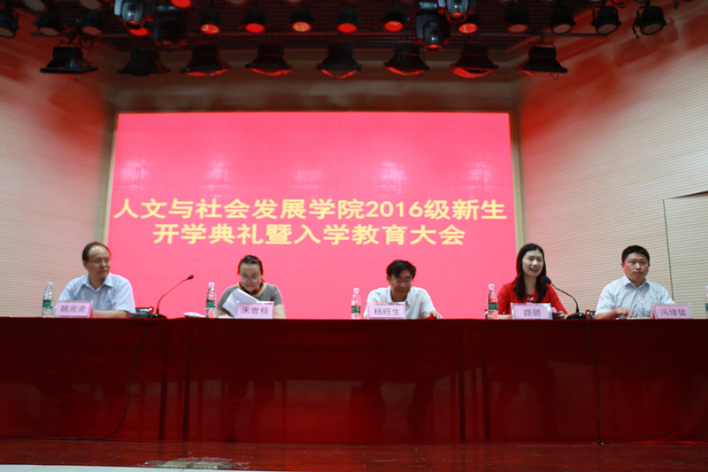 2016级新生开学典礼暨入学教育大会在大学生活动中心如期举行。人文院院长杨旺生教授、人文院党委书记朱世桂研究员、人文院副院长姚兆余教授、人文院副院长路璐副教授、人文院党委副书记冯绪猛副研究员出席了本次大会。部分系主任、班主任、教工党支部书记、辅导员以及16级全体新生也到会参加。本次大会由路璐副院长主持。