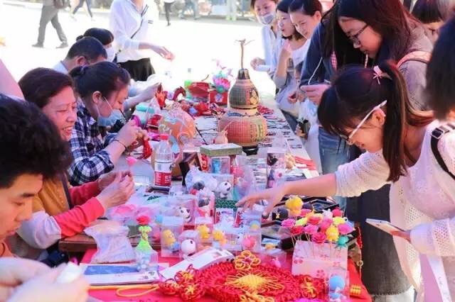 5月11日,民间工艺进校园展览会在玉兰路展开。现场摆摊中的精致的民间工艺品吸引了路过的学生,他们都纷纷驻足观看,志愿者们为他们介绍了工艺品的名称、来历等等。现场还放置了表演区、游戏区,引起了学生的极大兴趣,现场热闹非凡。这次活动让学生近距离接触了民间工艺品,认识了不一样的传统文化。