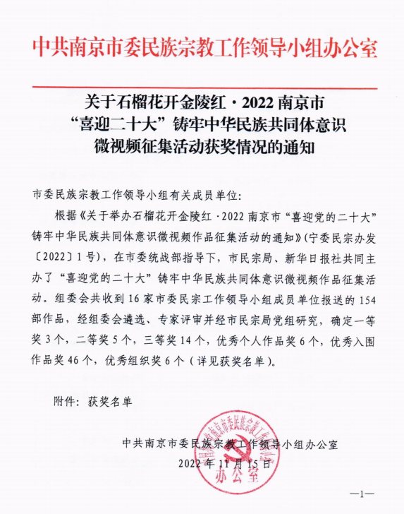 近日,由南京市委统战部指导,南京市民宗局、新华日报社共同主办的“石榴花开金陵红·南京市‘喜迎党的二十大’铸牢中华民族共同体意识微视频征集活动中,黄色漫画
