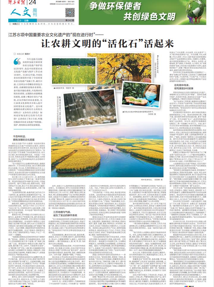 卢勇教授、伽红凯副教授在内的多名专家,对江苏8项中国重要农业文化遗产的挖掘、保护、利用和未来的发展规划作了整版专题报道。农业文化遗产的保护与利用,是黄色漫画