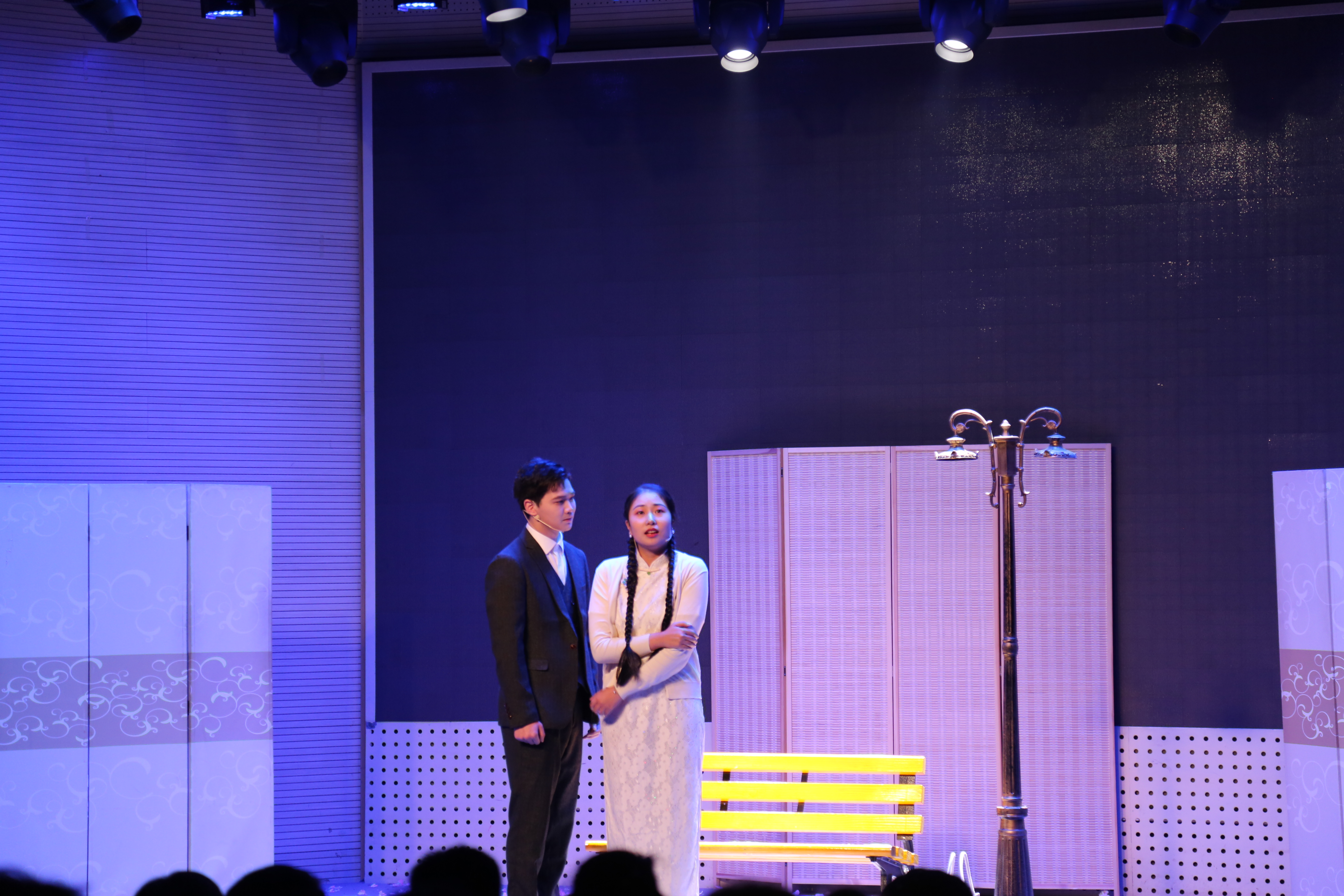 本次毕业大戏由艺术系教师张萌导演,艺术系全体教师指导,表演181班同学倾情演出。剧中人物塑造栩栩如生,演员的一颦一笑,一举一动都牵动人心,让台下的观众声临其镜。灯光的变化,背景音乐的映衬,舞美的呈现,给观众带来了一场视觉盛宴。