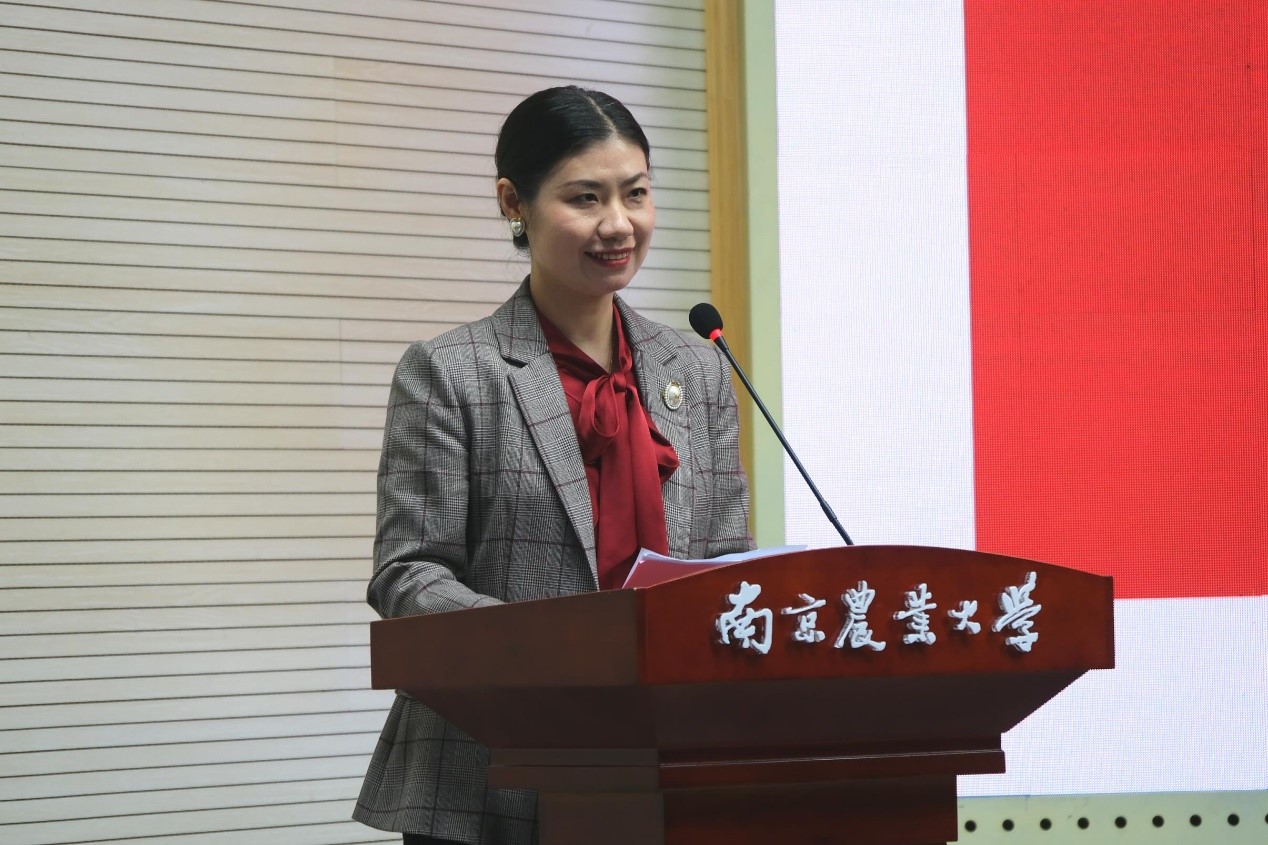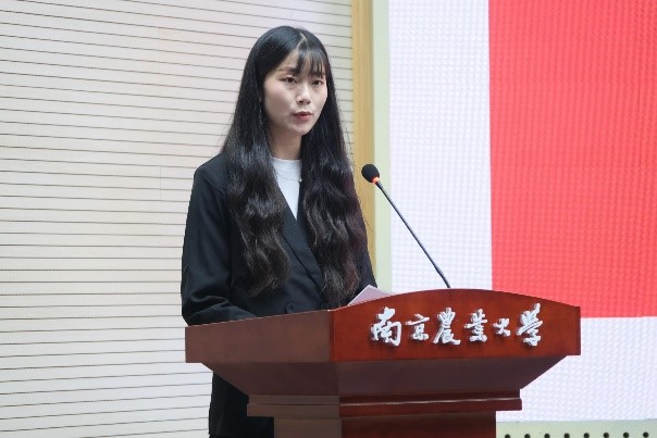 新生代表谈云燕用优美的语言表达了自己初入南农,对大学生活的憧憬和期望,她希望在南农四年可以认知自我,学好知识,修炼品德,成为助推党和国家扬帆的涌流。