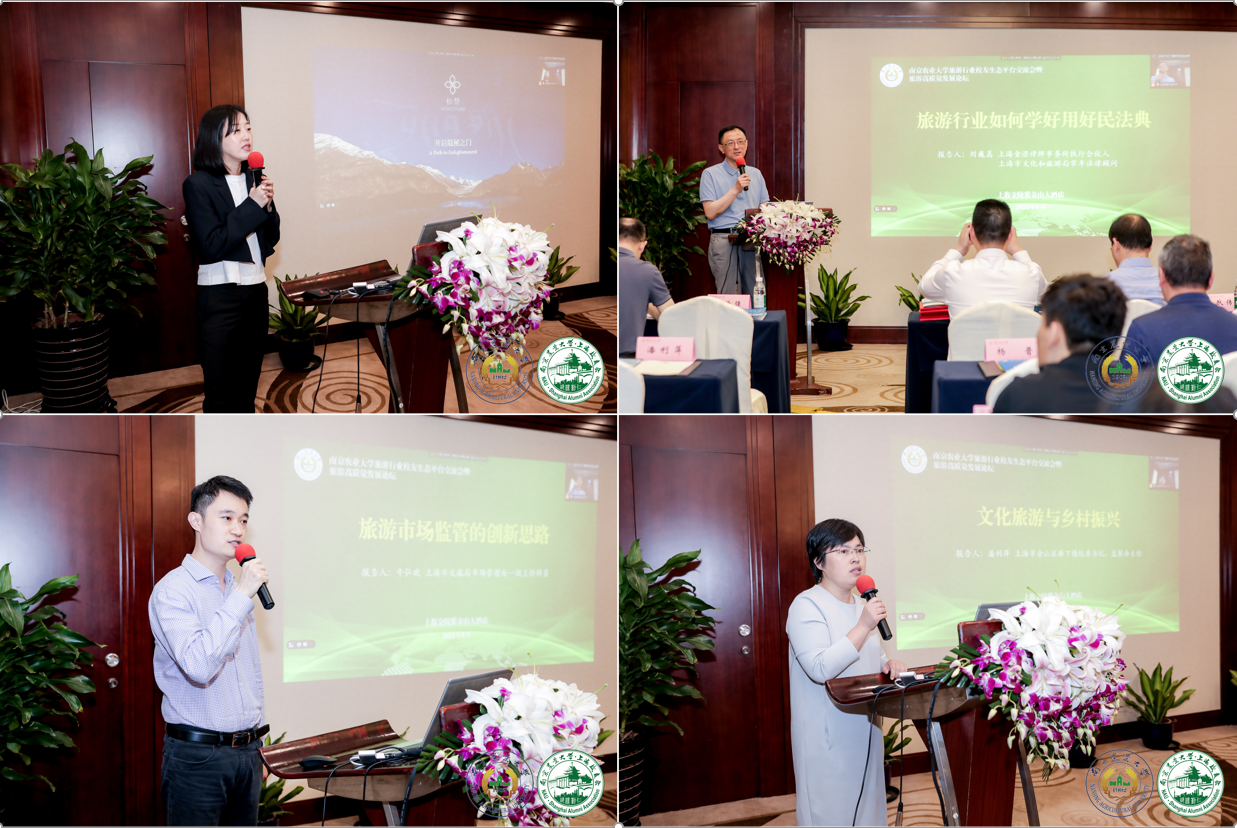 交流会采取专题论坛的形式,主题聚焦后疫情时代旅游高质量发展。温德姆酒店集团亚太区商务高级总监杨晋(旅游管理系2000届校友),美国夸克探险公司中国区经理陶丽娜,西藏自治区农业农村厅兽医局局长胡剑武,酒店集团商务推广总监周丹,上海金橙律师事务所执行合伙人、上海市文化和旅游局顾问刘巍嵩,上海市文化和旅游局市场管理处一级主任科员牛弘欢,上海市金山区廊下镇纪委书记、监察办主任潘利萍等,围绕疫后酒店市场发展前瞻、极地旅游、旅游政策法规、旅游市场监管、文化旅游与乡村振兴等主题,分享了经验和思考,堪称一场思想与观点交流的盛宴。