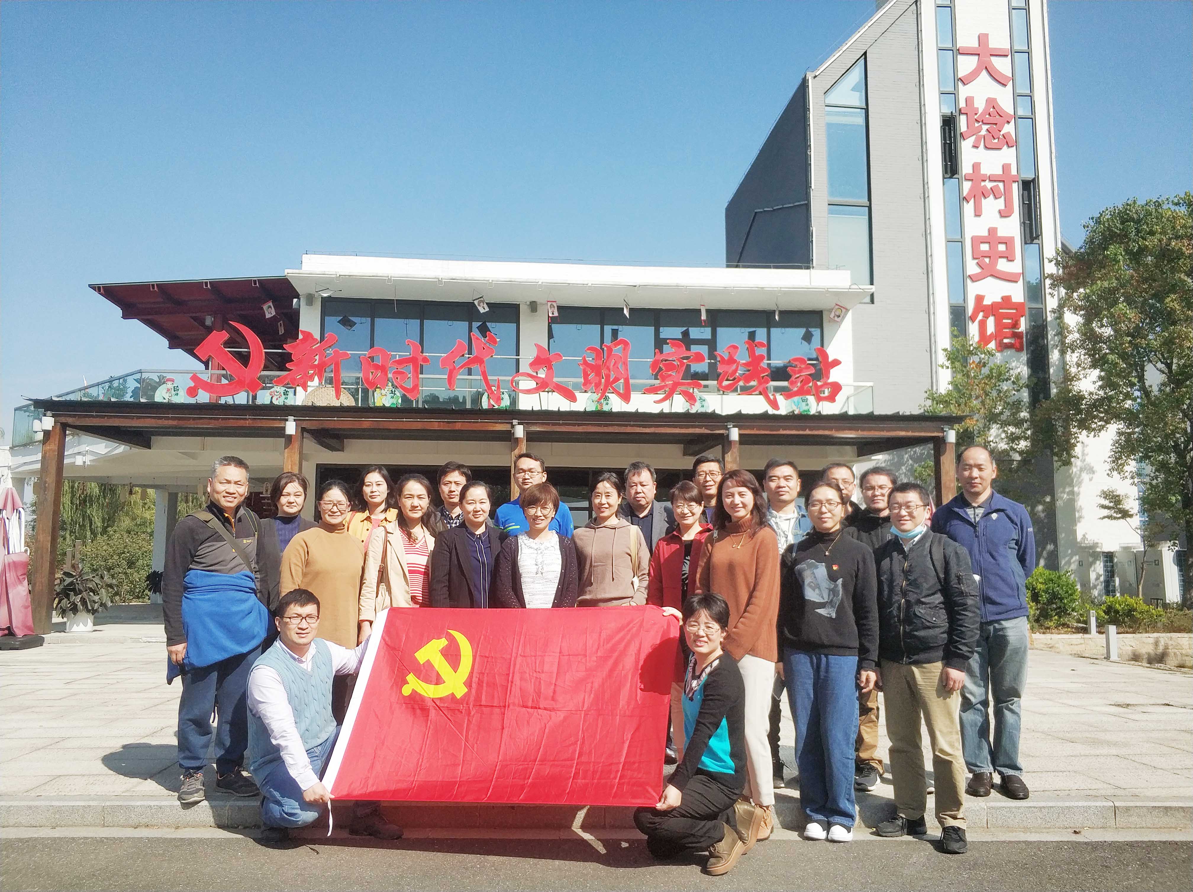 接着,党员教师们来到南京市先进基层党组织、“美丽乡村”示范点——浦口区大埝村。在大埝村党总支部书记刘明海及其他工作人员的带领下,党员教师们参观了大埝党史馆。党史馆里,不仅记录了村党组织建立的整个历史过程,还图文并茂地介绍了村里“支部建在协会上”“公推直选党总支领导班子”“党员户标牌”等创新做法。刘书记告诉大家,“在美丽乡村里嵌入红色元素,可以更好地加强农村基层党建,以党建引领乡村振兴。”大埝村还将陆续打造多个“党建+美丽乡村”建设示范点,以实景实境的形式教育党员群众,以点带面、示范带动、逐步推广,营造红色党建引领绿色发展的良好氛围。