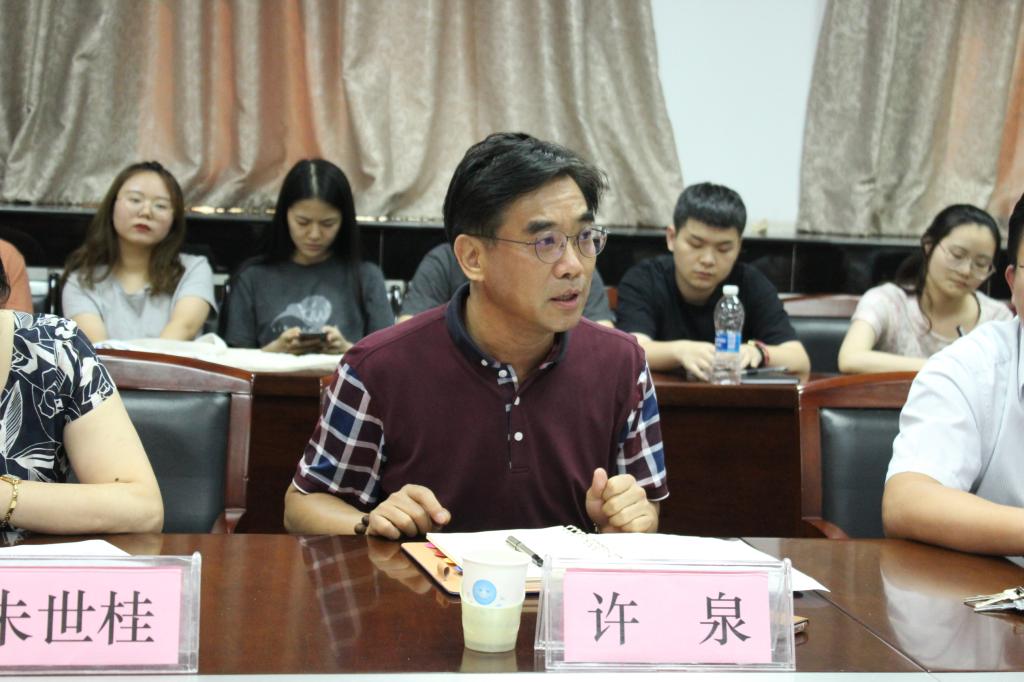 接着,朱利群教授就学科研究方向、师资力量、课程设置、研究生培养方案等内容进行了逐一介绍,并对在座的新生提出了殷切的期望,他鼓励大家要养成良好的学习习惯和生活习惯,服从导师管理,积极参与实践,最重要的是要与人为善,尊敬师长,建立良好的人际关系。