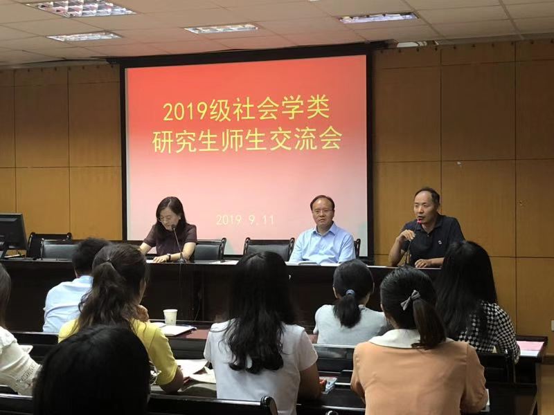 旅游管理系系主任崔峰教授等出席发言,社会学类部分教师代表郭文副教授、王小璐副教授、郑华伟副教授、张爱华副教授、杨灿君老师、祝西冰老师、张娜老师、张兴宇老师等及2019级社会学、社会工作、民俗学学科研究生参加了交流活动。