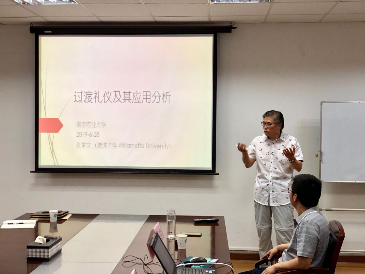 报告伊始,季中扬教授代表全院师生对张举文教授的到来表示热烈欢迎并做相关介绍。首先,张举文教授就仪式与非仪式的区别引出了主题并与在场的师生做了高度的互动,师生们纷纷给出了自己对仪式与非仪式的理解。根据师生们的回答,张教授结合他的研究经历给出了仪式的分析方法:最小有意义行为单元(群)。随后,张举文教授从双重三段进程为我们介绍了过渡礼仪模式的基本概念。所谓双重三段进程,在心理上表现为:前阈限-阈限-后阈限,地域(身体)上表现为:分隔-边缘-聚合。张举文教授指出,处在阈限与边缘的行为是一种模棱两可、迷茫的的行为,阈限-边缘是过渡礼仪的核心。接着,张举文教授从仪式到非仪式的、现代日常生活中的“神圣”行为与物和“仪式”行为与物的“非神圣”与“非仪式”、日常生活(广义)过渡论三个方面指出如何应用过渡礼仪模式分析日常生活行为。之后,张举文教授精彩的讲座结束后,在场的师生就仪式的边界的界定、共情问题、农民文化节如何与过渡礼仪相结合、过渡礼仪中的意义与特纳所说的意义有何不同等问题与张举文教授进行了热烈的探讨与深入的交流。