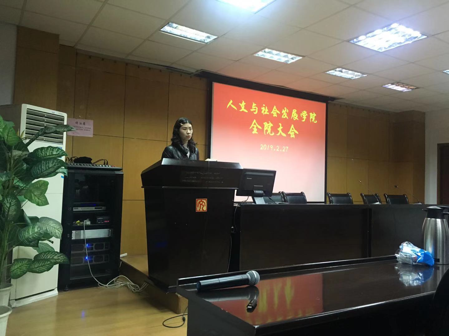 十一届十五次全委(扩大)会议精神,在喜迎建国70华诞之际,学校将迎来第十二次党代会的召开,学院换届工作也将召开。接着汇报了人文学院党委的总体思路,部署了这学期的工作任务和具体目标:扛起主责、担当主业、做好主角、风清气正。
