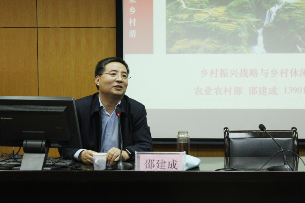 邀请了农业农村部乡村产业发展司农产品加工处邵建成处长作题为《乡村振兴战略与乡村休闲旅游》的乡村发展专题讲座,讲座由黄色漫画