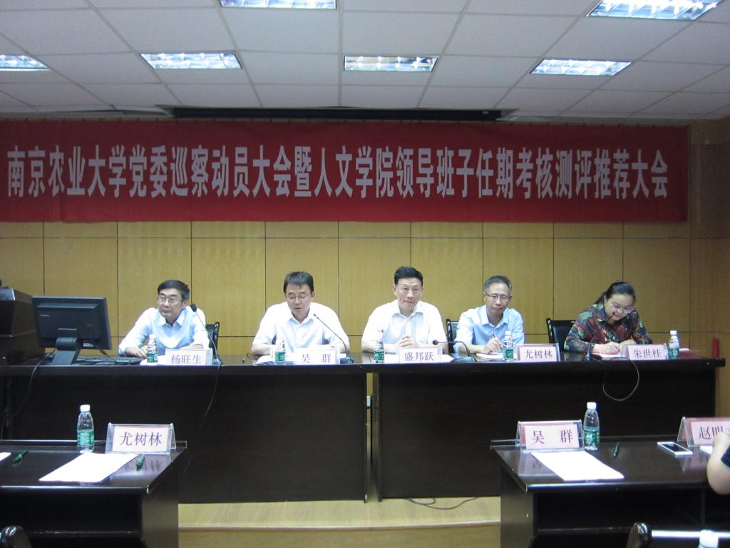9月26日下午3:00,校党委党委巡察动员大会暨人文学院领导班子任期考核测评推荐会在逸夫楼6047召开。校党委副书记、纪委书记、巡察工作领导小组副组长盛邦跃,校纪委副书记、巡察工作领导小组办公室主任尤树林出席大会,校组织部部长、巡察组组长吴群,巡察组、考核组的其他成员出席了大会。学院全体党政领导干部、教职工,离退休人员代表,学生代表也参加了大会。大会由院党委书记朱世桂主持。