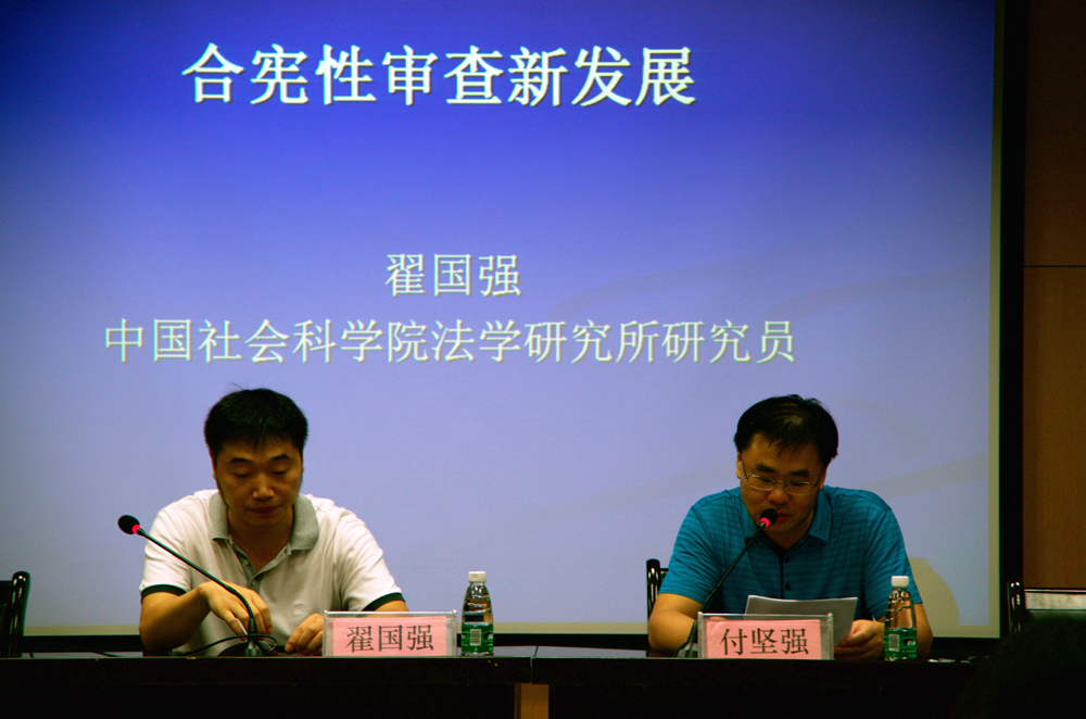 讲座伊始,翟国强教授指出,宪法是治国安邦的总章程,是国家的根本法。而宪法的权威和生命在于实施,合宪性审查制度是保障宪法有效实施的关键制度。十九大报告中提到“加强宪法实施和监督,推进合宪性审查工作,维护宪法权威。”接下来,翟国强教授详细讲述了我国的宪法与合宪性审查的发展历程,体现了我国宪法的不断进步。