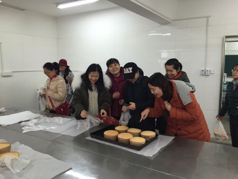 在放入烤箱后,需要等待一个小时。女教职工们开始了欢乐的茶话会,大家谈工作,谈家庭,谈生活,谈人生,聊的非常开心。随着烤箱“滴答”的声音,一小时很快就到了,大家开始揭晓自己的劳动成果了。打开烤箱,首先一股浓郁的香味扑鼻而来,然后大家看着蛋糕开始拍照留影,最后带着蛋糕满意而归。