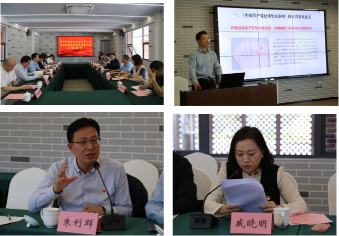 党委委员对《中国共产党纪律处分条例》进行深入学习。学院党委书记李日葵以《解读<中国共产党纪律处分条例>》为主题讲授党课,从修订的背景及意义、修订的主要内容和如何贯彻落实三个方面对《中国共产党纪律处分条例》进行领学。学院副院长朱利群领学《第六章 对违反政治纪律行为的处分》,逐字逐句分析和学习相关内容,对常见的和可能会被忽视的政治纪律行为做出着重提醒。学院副院长戚晓明领学《第七章 对违反组织纪律行为的处分》,结合案例和思考,对违反组织纪律行为的处分进行深入学习和分析。全体学员积极参与学习与讨论,纷纷表示要利用党纪学习的契机,在结合实际业务处做好文章,努力把党纪学习教育成果转化为推动学院高质量发展和现代化建设的强大动力。