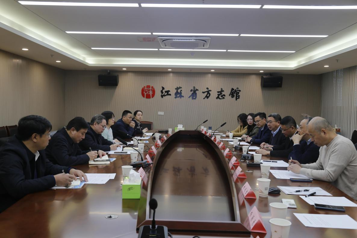 2025年2月24日上午,学院研究团队赴江苏省地方志工作办公室开展学术交流暨党建共建活动。学校原党委常委、副校长董维春,学院院长卢勇、党委书记李日葵,包平、沈志忠、朱锁玲教授,图书馆(文化遗产部)副馆长(副部长)辛闻等二十余位专家学者和师生代表参加交流共建。江苏省地方志工作办公室党组书记、主任左健伟,党组成员、副主任桑荟,省方志馆副馆长沈萌溦等热情接待了学院研究团队一行。