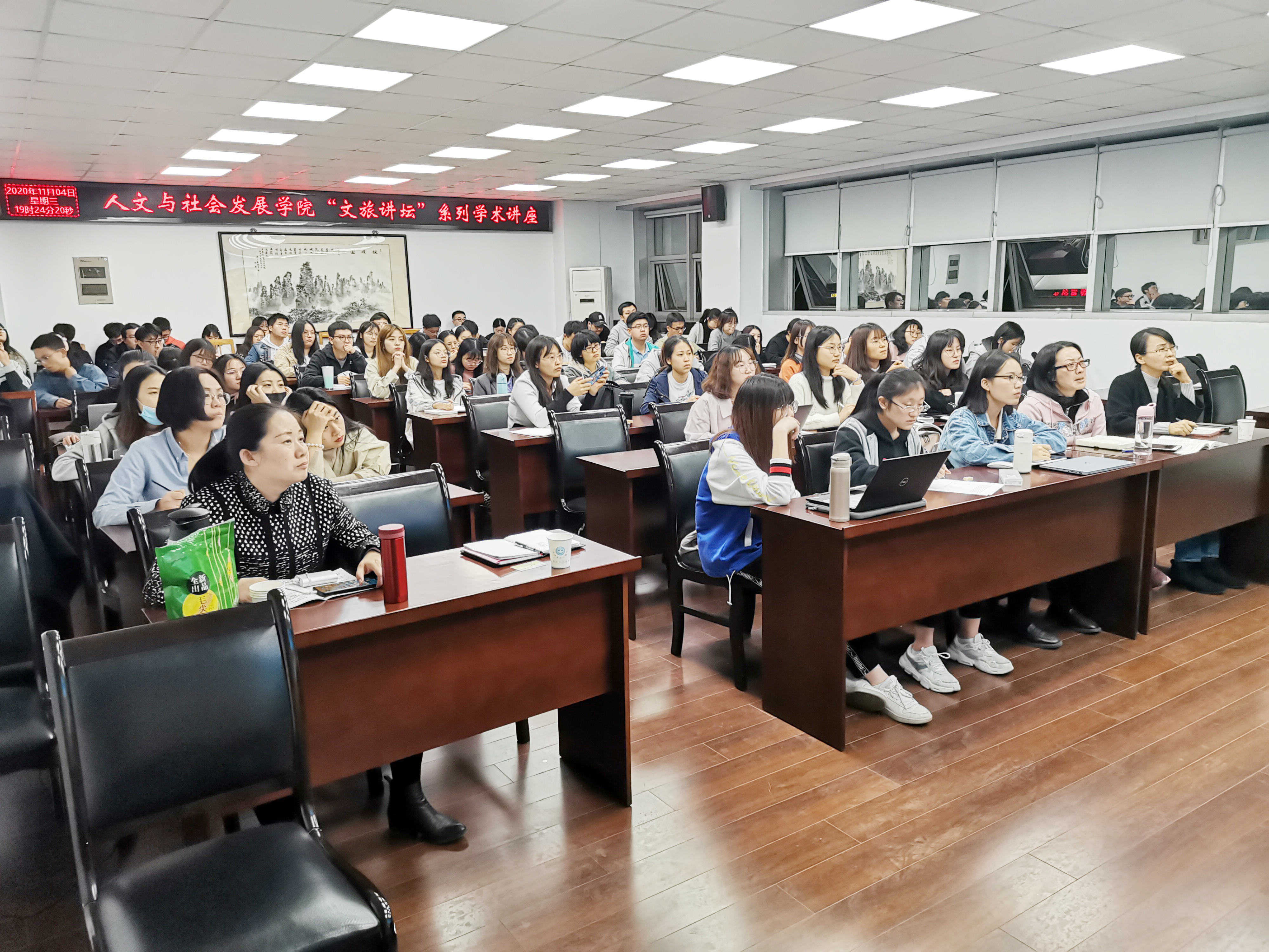 ,为师生们做了一场题为“文旅融合规划理论与实践——以15个文旅融合案例地为例”的学术讲座。讲座由旅游管理系主任崔峰教授主持,旅游管理系本科生、研究生及相关专业学生共计70余人参加,讲座还吸引了来自东南大学、杭州园林设计院南京分院的部分师生。