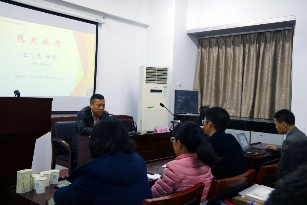应飞虎教授演讲的题目是“经济法研习中的跨学科方法”。讲座开始,他通过一件真实案例提出不能仅从公平正义的角度思考法律问题,而且要关注解决问题的社会成本。当心脏病人受到他人无意惊吓而死亡,法院判决认为无意惊吓到心脏病患者的人将受到惩罚。应飞虎教授认为,该法院的判决有失妥当。虽然维持了公平正义,但这样的判罚可能会造成人与人之间沟通的障碍,使病人遭到歧视,进而产生高额的社会成本。同时,应飞虎教授指出,此类防御性社会成本是损耗较大的社会成本,不予提倡。短短几句,便将经济学研究方法与法律实务联系到一起,使在场听众耳目一新,纷纷献出掌声。应飞虎教授还指出,运用经济学思维来考察社会后果的方法,也可以用在其他方面。如最近沸沸扬扬的平顶山强奸调解案件。连强奸都能调解,这样的调解无疑会使法律失去威慑力,随之增加的社会成本又将会带来更多的社会影响与危害。针对餐饮业制定包间最低消费标准这一行为,应飞虎教授认为,虽然从《消费者权益保护法》方面看是违法的,但也不能全盘否定最低消费标准的制定。根据经济学思想,这样的分层消费有其存在的价值:包间投入更多,理应消费更多。从经济效应来看,这样现象的存在有其合理性。应飞虎教授推荐了科斯的《经济成本问题》一书,希望听众能够放宽眼界,关注社会总影响,并且提高对隐性成本的关注。在法经济学方面,应飞虎教授指出人的生命无法用经济来衡量,但需要罗列所有的后果。将经济学研究与法学联系起来,超出单纯法学研究的范围,用不同的视角观察,自然会有不同的发现。应飞虎教授还提到了脑科与法学的关系:大脑是不完美的,无法追求自身利益的最大化,所以,很多情况下人们会出现“非理性”行为。比如我们常说的从众心理与锚定效应,从心理学的角度分析,这是因为人本身受到群体的引导和压力,所以不知不觉地与多数人保持一致。但这些情况,与追求“理性”的法律相违背,这就需要我们拥有开阔的视野与跨学科的研究方法,去理解和协调法律精神与人类自身的差异。最后,应飞虎教授诚挚地建议我们将经济学研究与法学结合起来,意识到跨学科学习的重要性。希望跨学科学习早日为我们以后的研究打开新的方向。
