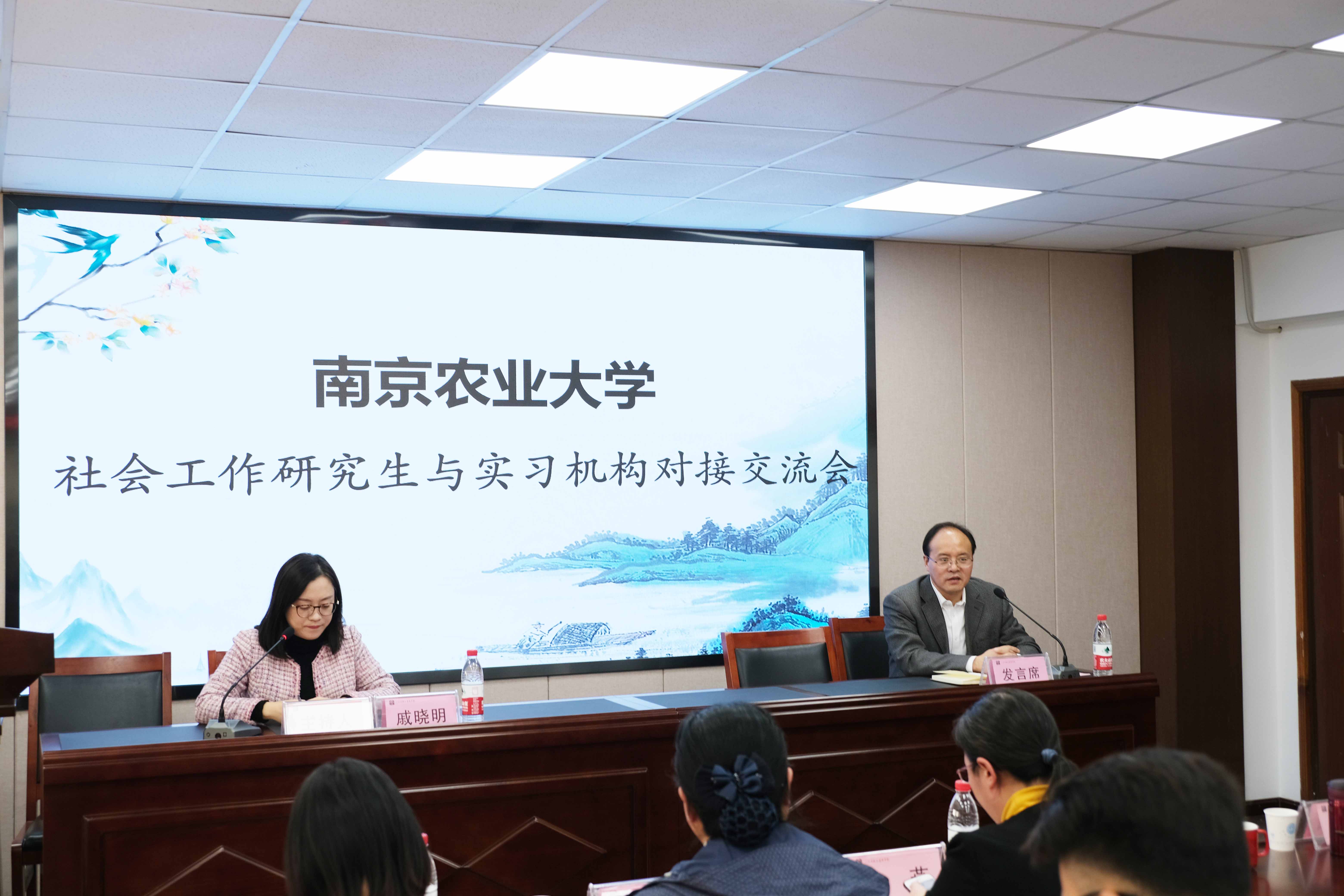 MSW教育中心主任姚兆余教授,社会学系主任戚晓明教授,MSW教育中心秘书祝西冰老师,学院研究生秘书肖阳老师,以及来自江苏省老年公寓、南京心贴心老年人服务中心、悦民社会工作服务中心、南京市养老志愿服务联合会、南京麦田健康管理有限公司、晓平社会工作发展中心、心桥社会工作服务发展中心、承阳养老事业发展事务所、嘉岳养老工作服务中心、四月天社会工作服务中心、金苹果社会工作服务中心等11家社会服务机构的负责人或代表出席了本次交流会。2020级30名社会工作研究生参加了交流会。会议由戚晓明主持。