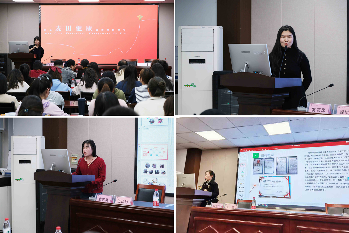 随后,11家机构负责人或代表分别介绍了机构概况和目前开展的服务项目,并对研究生实习工作提出了期望和要求。其中,江苏省民政厅机关党委专职副书记、江苏省养老服务指导中心主任、江苏省老年公寓院长孙燕表示,江苏省老年公寓作为省级养老服务平台,长期以来秉持个性化服务的理念,拥有经验丰富的养老服务专家,能够为南农社工实习生提供足够的成长空间。南京市心贴心老年人服务中心副主任张莲娣介绍了长期以来与南农MSW合作培养社会工作研究生的情况,表达了对实习生的希冀和期待,希望研究生在实习中逐渐掌握实务方法和技能,逐步成为能够承担项目服务的社工人才。悦民社会工作服务中心总干事徐晓辉介绍了该机构多年来开展青少年健康成长服务工作的过程和成就,充分肯定了我校社会工作研究生在实习过程中的认真态度、敬业精神和责任担当。交流会上,2019级社会工作研究生陈奇结合自己的实习工作,介绍了实习期间在知识增长和能力提升方面的收获。