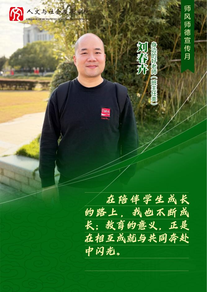 “我想成为学生大学生活中值得回忆的一环。”刘春卉老师不追求刻意的亲密,却以真诚的参与赢得学生的信任。一名刘春卉老师班级的学生回忆道:“他鼓励我将课堂汇报深化为学术观察,甚至投稿期刊、参加学术会议,这种认可让我敢于尝试更多可能。”另一名学生则在保研阶段因他的经历分享找到方向。对他而言,教学与班主任工作的意义,在于以学术为纽带,与学生共同成长。
