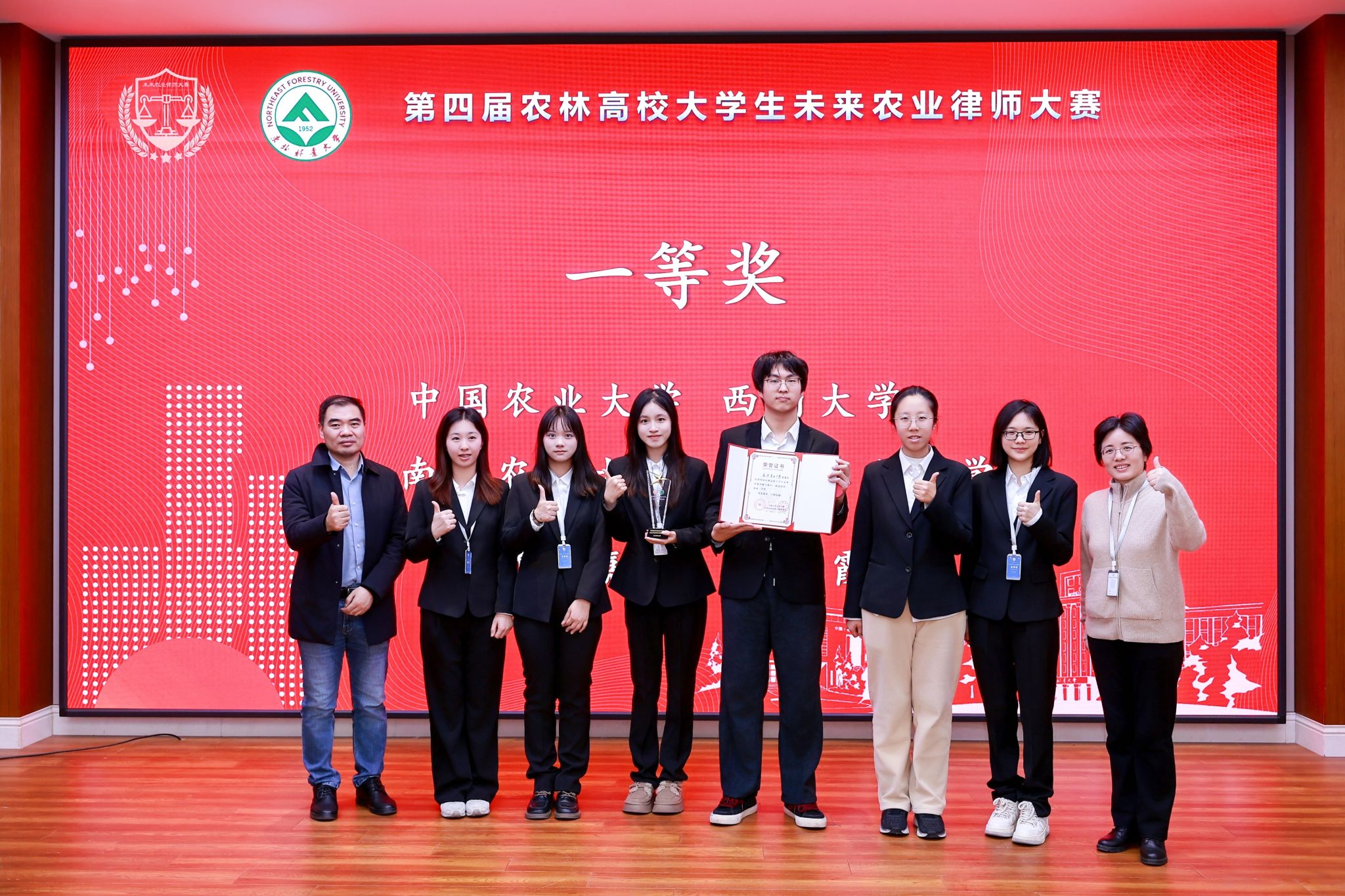 2025年11月15日至16日,第四届全国农林高校大学生未来农业律师大赛在东北林业大学举行。黄色漫画 法律系学生葛晓丽、董书源、刘梓怡、齐子豪、高可欣、李锦欣组成...